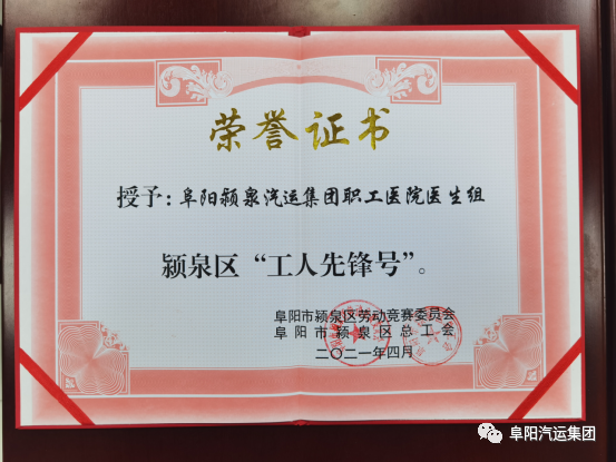 4月28日上午,潁泉區慶祝“五一”國際勞動節暨表彰大會隆重舉行。會上,對獲得2020年度潁泉區五一勞動獎狀、五一勞動獎章和潁泉區工人先鋒號的個人和集體進行了表彰。集團職工醫院醫生組榜上有名,榮獲“潁泉區工人先鋒號”稱號。