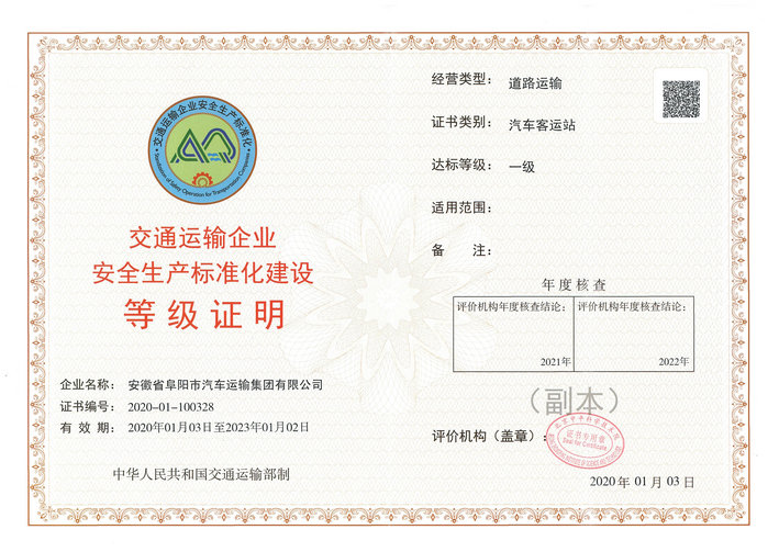 為了嚴(yán)格落實(shí)企業(yè)安全生產(chǎn)主體責(zé)任,切實(shí)推動(dòng)企業(yè)安全生產(chǎn)工作規(guī)范管理,確保生產(chǎn)事故持續(xù)下降,8868官網(wǎng)app下載按照《交通運(yùn)輸部關(guān)于印發(fā)〈交通運(yùn)輸企業(yè)安全生產(chǎn)標(biāo)準(zhǔn)化建設(shè)評(píng)價(jià)管理辦法〉的通知》(交安監(jiān)發(fā)﹝2016﹞133號(hào))文件要求,切實(shí)推進(jìn)安全生產(chǎn)標(biāo)準(zhǔn)化達(dá)標(biāo)工作,并于2020年1月通過(guò)了安全標(biāo)準(zhǔn)化四個(gè)類別的一級(jí)達(dá)標(biāo)評(píng)審。