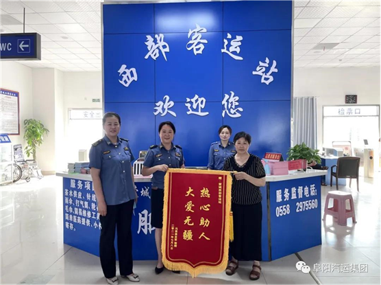 7月9日,旅客馮秀美來(lái)到蒙城西部客運(yùn)站贈(zèng)送感謝錦旗,上面寫著“熱心助人,大愛無(wú)疆”,感謝西部客運(yùn)站員工幫助找回離家出走的孩子。